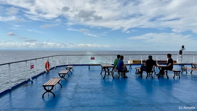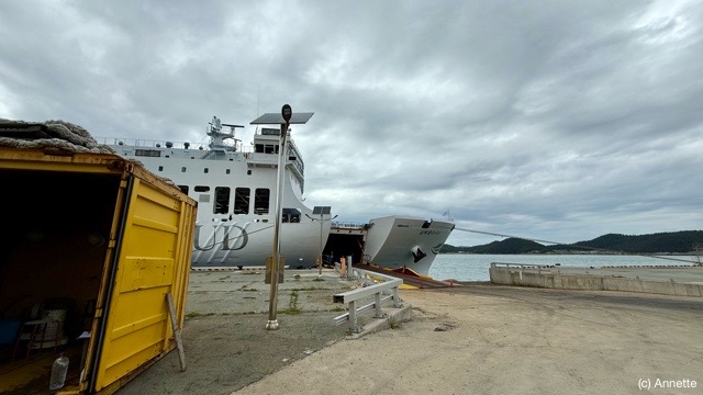 Die Fährtickets zu erwerben, war gar nicht so einfach. Zuerst nur für das Auto, dann das Auto an Bord bringen. Dann mit dem Bus vom Schiff zurück zum Fährterminal, Tickets für die Personen kaufen, gefühlt 20 Mal Ausweiskontrolle, dann durften wir einsteigen…