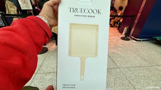 …auf dem Flughafen. Da kauft man schon mal eine Bratpfanne. 🙂
