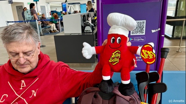 SKY Airlines ist speziell, fast so wie RyanAir. Da konnten sie in ihrem System unser bezahltes Gepäck nicht finden… Haben dann irgendwann Fotos meiner Buchungsbestätigung auf meinem Handy gemacht und uns die Koffer abgenommen. Hoffentlich kommen die Koffer dann auch mit uns an.
