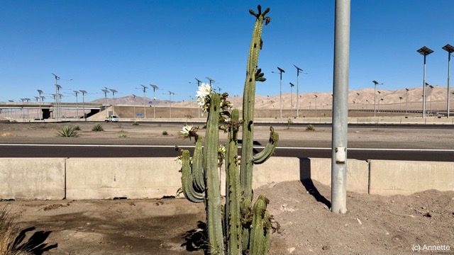 Mit Bewässerung wachsen Kakteen an der Straße. Und blühen.