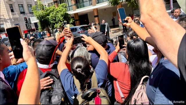 Und dann war da noch der neu gewählte Präsident Chiles zu Besuch und wurde bejubelt. Ich habe versucht, ihn mit Pfeil zu markieren. 🙂