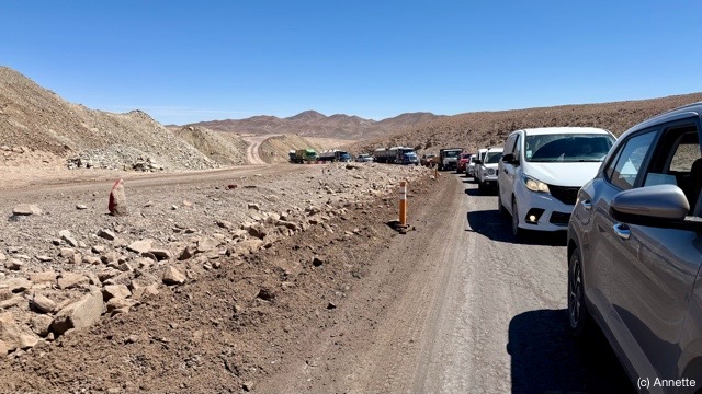 Über 2 Stunden standen wir auf der einzigen Straße und haben gewartet, bis die Bauarbeiter eine Pause gemacht haben.