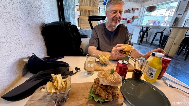Nachdem wir heute viele Kilometer gelaufen sind, gab es „richtiges Essen“, nicht Tüte. 😂